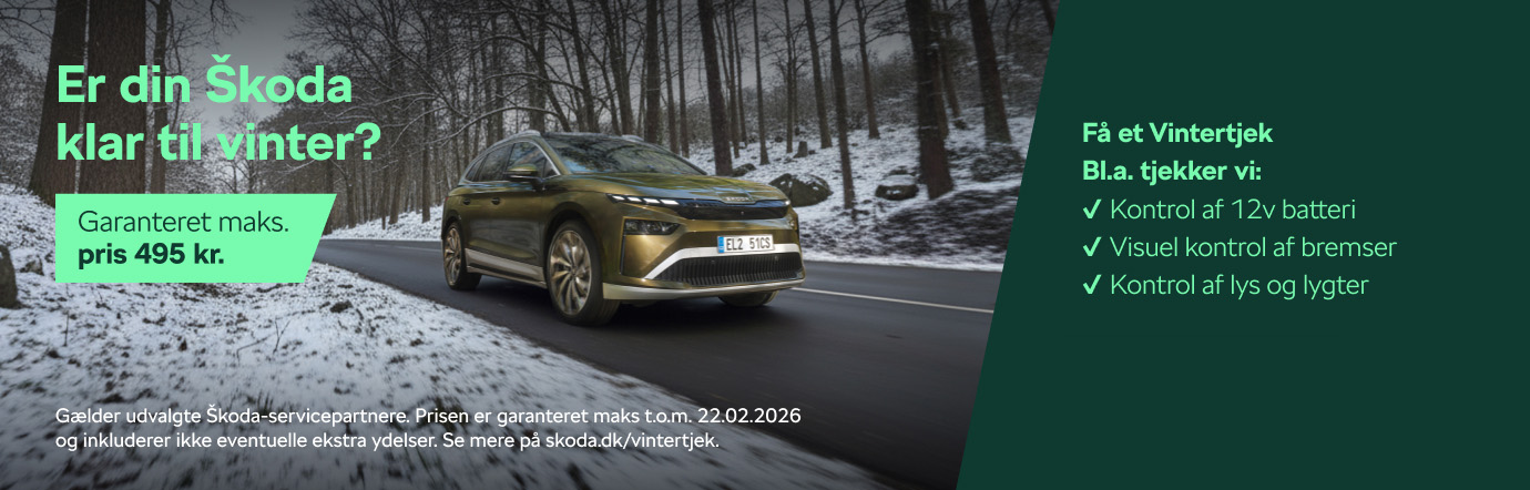 Når hverdagen står på mørke morgener, korte dage og våde, isglatte veje, er det rart at vide, at din Škoda fungerer, som den skal. Et Vintertjek hos din autoriserede Škoda-servicepartner giver dig og din familie tryghed, fordi vi gennemgår vigtige punkter på bilen, inden vinteren for alvor sætter ind.